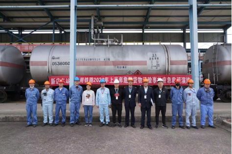 6、2023年4月28日,物流公司、新店車站、中韓石化、交運公司等多家單位在乙烯工業站開展化工新區鐵路專用線新增石腦油運輸裝卸設備事故應急演練。