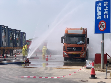 8、2023年6月7日,物流公司、恒基達鑫在臨時停車場開展氫氟酸罐車泄漏事故應急演練。