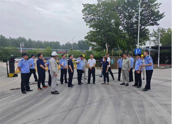 7月3日,青山區人民政府副區長、區公安分局局長彭小平、化工投公司董事長孫中明一行深入化工區危化品停車場項目現場調研指導安全生產工作,重點檢查了危化品停車場安全值守制度體系和應對高溫天氣的應急預案及措施。區公安分局、區交通大隊及化工投公司安委辦、物流公司、恒基達鑫等相關負責人參加調研。